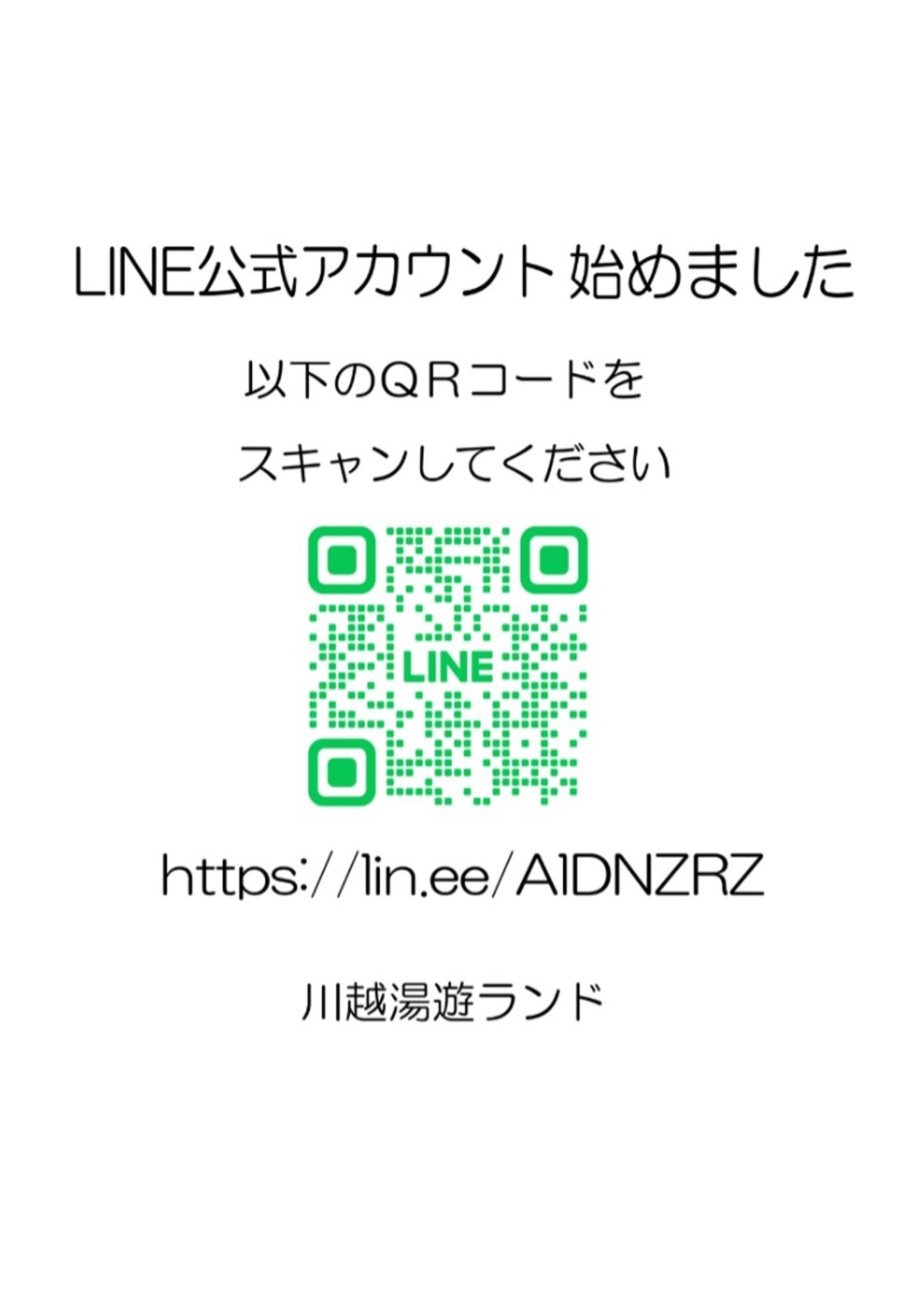 ホーム >ニュース >お知らせ >LINE公式アカウント始めました LINE公式アカウント始めました 2025.10.06 川越湯遊ランドの公式アカウントになります お得な情報、イベント等を発信していきます よろしくお願いいたします 求人情報 会社概要 プライバシーポリシー お問い合わせ サイトマップ